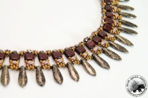 This simple piece is woven with beautiful Czech tile beads and dagger or any top drilled beads on the bottom row. Japanese seed beads in size 8, 11 and 15 are woven throughout with Czech Super Duo beads. The piece measures 16 1/2" and is 1 1/4" in width. Materials not included and must be […]