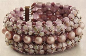 This gorgeous bracelet is made up of a right-angle-weave base embellished with pinch beads and crystal pearl rounds. Materials not included and must be purchased at the time of the class.