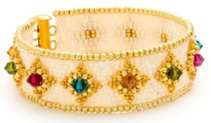 Stitch a fun, two-drop peyote base to make a bracelet that is embellished with crystal and seed bead medallions. Materials not included and must be purchased at the time of the class.